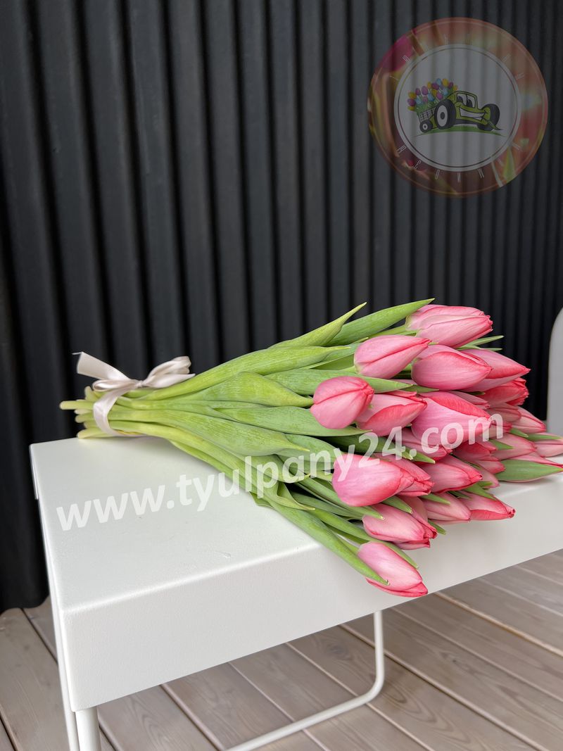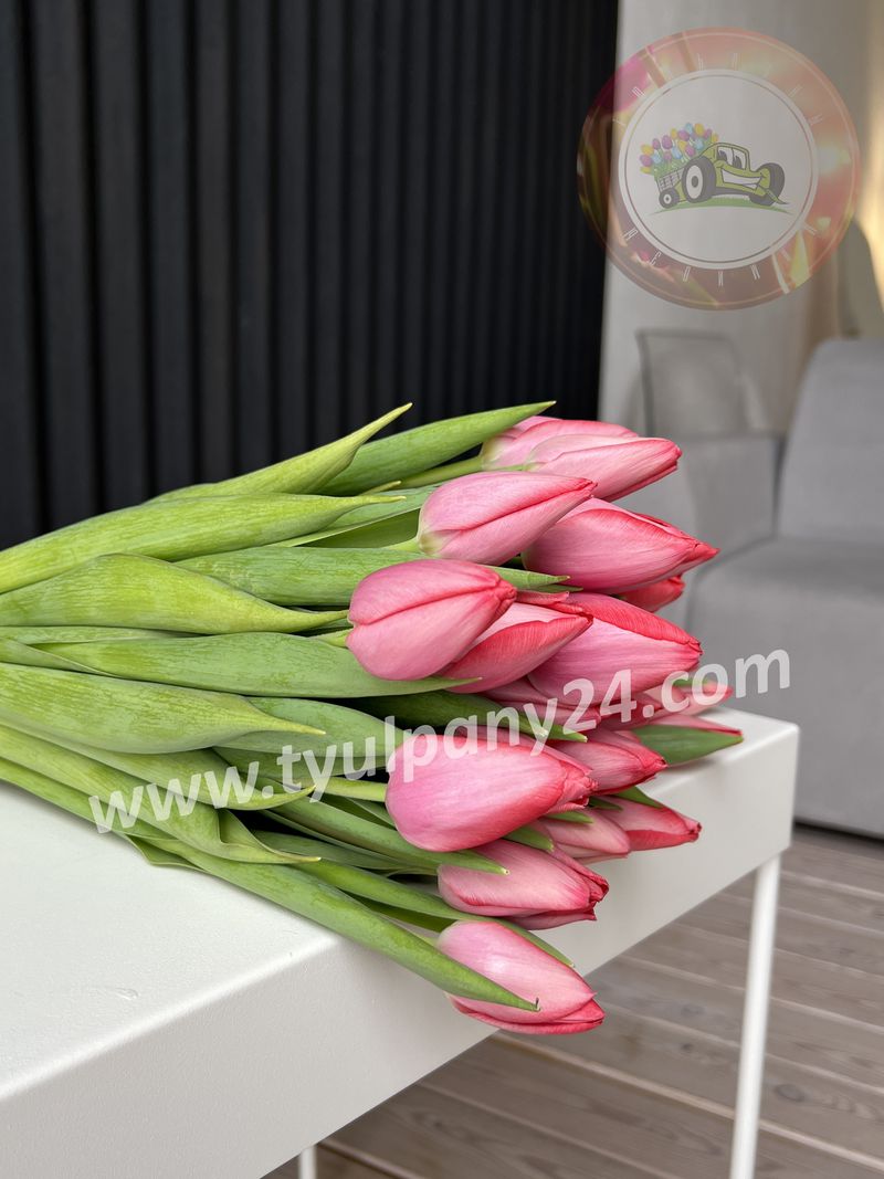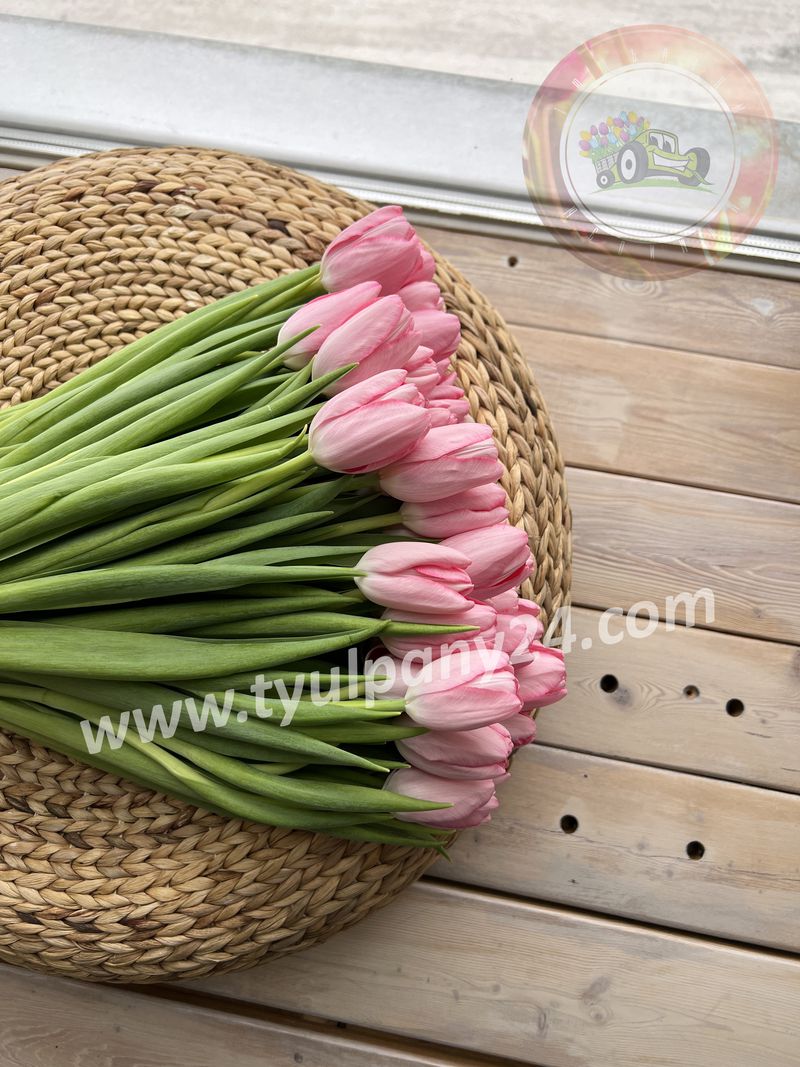 Необычайный, элегантный сорт тюльпана, относится к классу Триумф. Имеет прочные, мясистые стебли, плотные лепестки создают бокаловидный бутон, насыщенно розовой окраски, с легким напылением